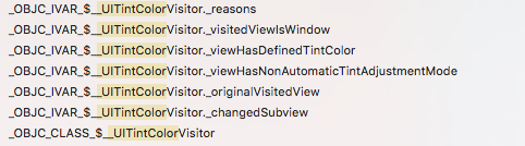 _UITintColorVisitorhas a few properties that are persisted between the different invocations ofvisitView:. Here’s an overview of all properties found in Hopper: